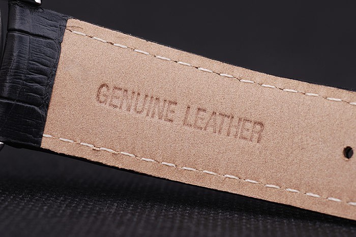 Bracelet: Svart krokodil läderrem med värme präglad Audemars Piguet namn och logotyp och en Audemars Piguet inskriven rostfritt stål flip-over krok clasp