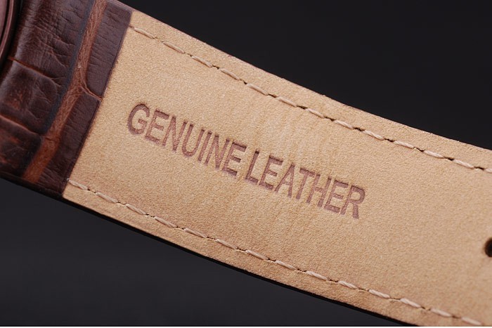 Bracelet: Brun krokodil läderrem med värme präglade Audemars Piguet namn och logotyp och en Audemars Piguet inskriven burgundy rostfritt stål flip-over krok clasp