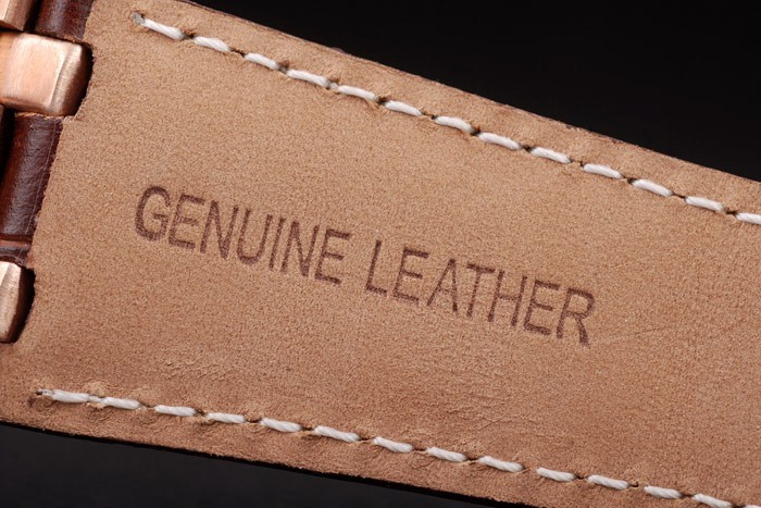 Bracelet: Heat präglade Audemars Piguet brun krokodil läderband med vita sömmar och Audemars Piguet graverad Rose-guldpläterade vika in clasp
