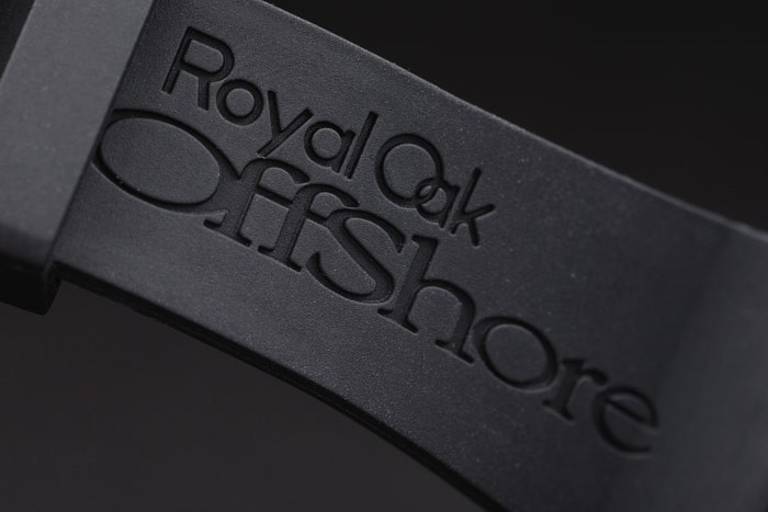 Bracelet rostfritt stål: Audemars Piguet Royal Oak Offshore präglade svart gummiband med Audemars Piguet graverad jon-plated fold-in clasp