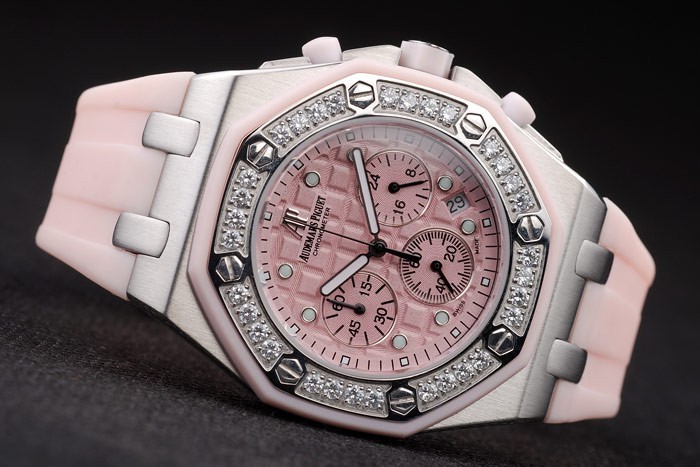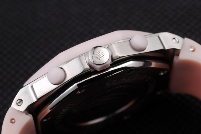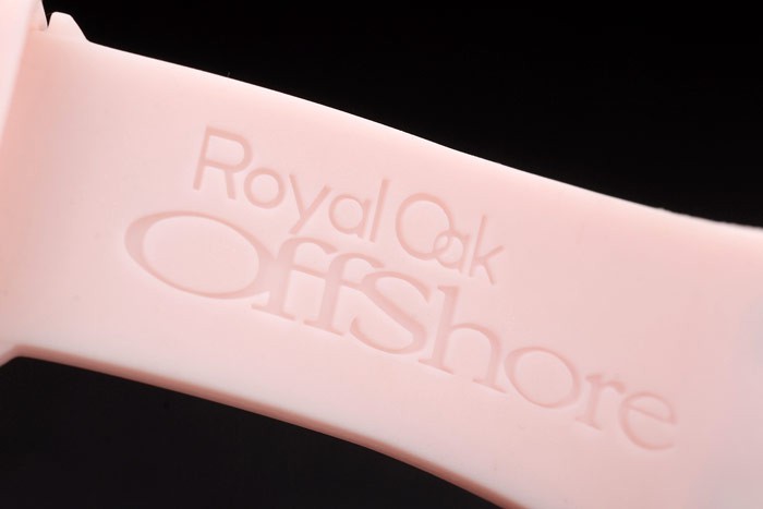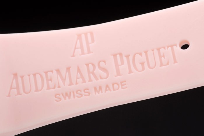 Bracelet: Audemars Piguet Royal Oak Offshore präglade rosa gummiband med Audemars Piguet graverad borstat veck rostfritt stål -I clasp