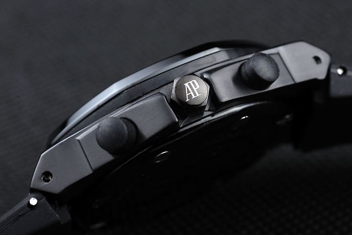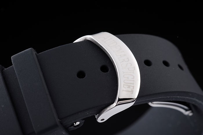 Bracelet: Audemars Piguet präglade svart gummiband med Audemars Piguet graverad rose-guld map- i clasp