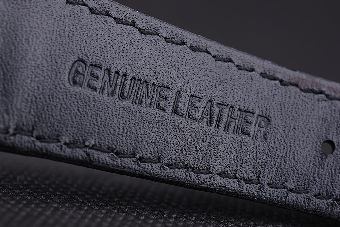 Bracelet: Svart krokodilläderband med vit tråd sömmar och värme präglade Audemars Piguet namn och logotyp och en Audemars Piguet inskriven rosen guldpläterad flip-over krok clasp