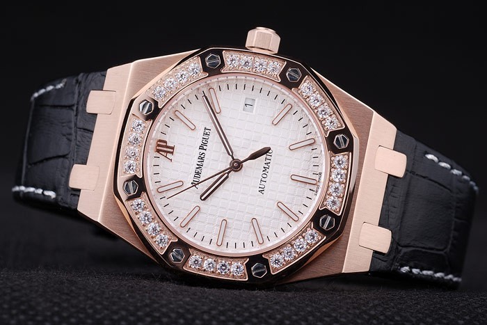 Crown: 18k rose-guld pläterad cutwork krona med Audemars Piguet logo