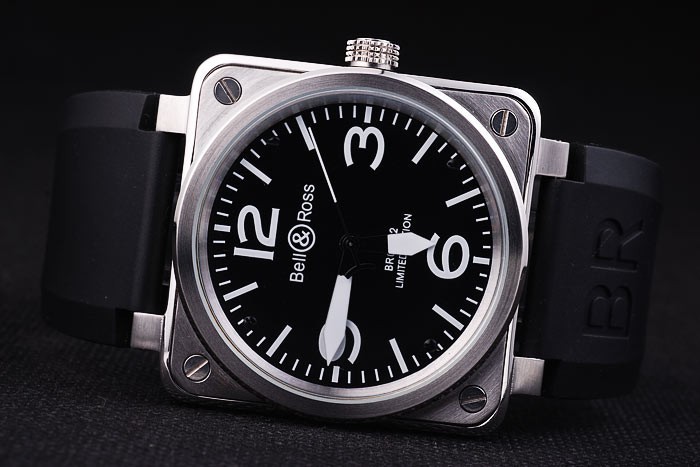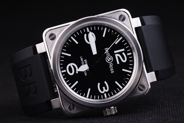 Tillbaka: borstat rostfritt stål skruvas ned tillbaka med Bell & Ross inscriptions