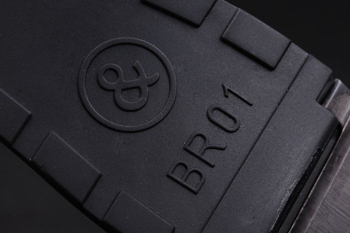 Bracelet: Svart gummiband med värme präglade logo, modellnummer och produkt kod och BR graverad jon-klädd krok-spänne spänne