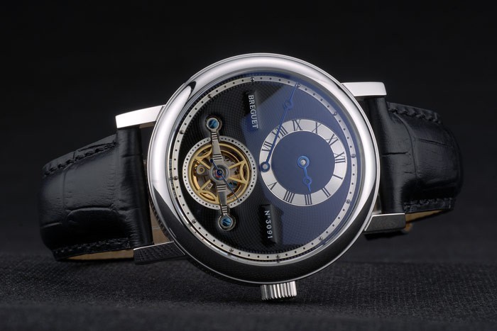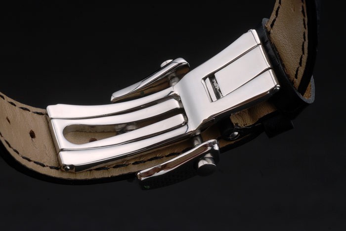 Bracelet: Breguet värme präglat svart krokodil läderrem med graverad Brequet polerat rostfritt stål fold-in krok spänne clasp