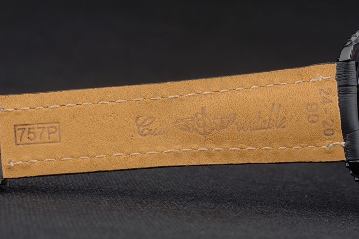 Bracelet rostfritt stål: Breitling värme präglat svart krokodil läderrem med vit tråd sömmar och logotyp ingraverad jon-plated rostfritt stål fold-in clasp