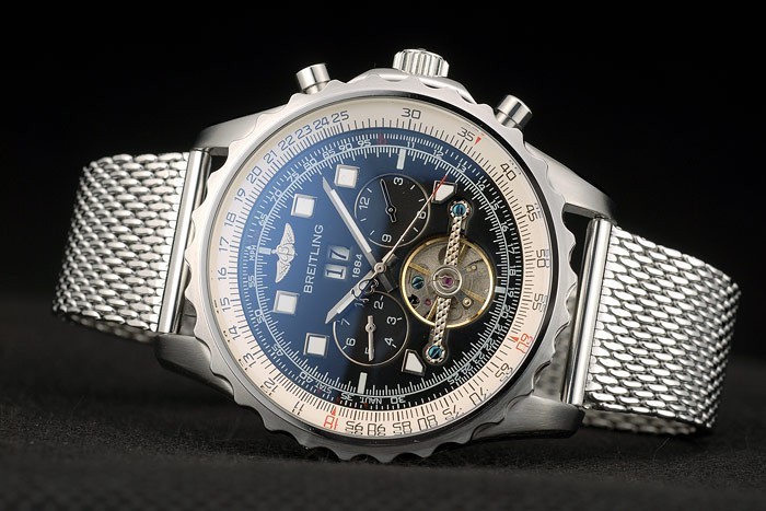 Denna klocka har AR glas. Ansiktet färg visas olika färger beroende på hur ljuset faller på itBack: Polerat rostfritt stål snap-in tillbaka med Breitling Transocean engravings