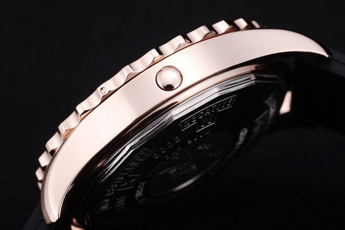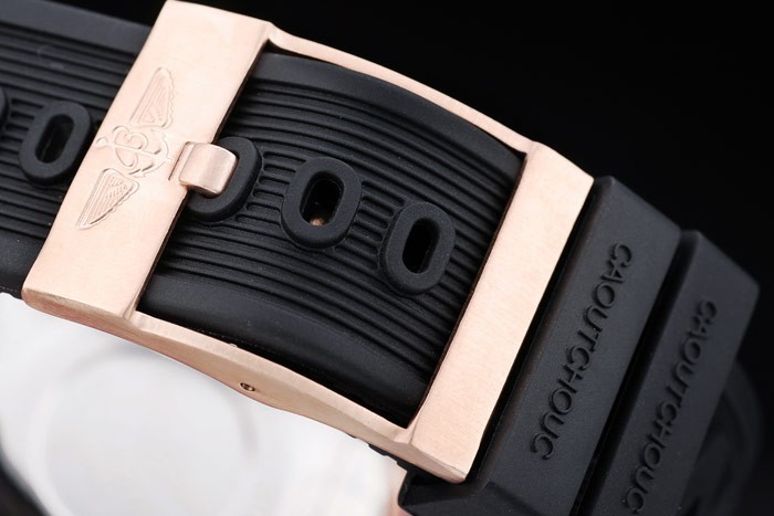 Bracelet: Svart gummiband med Breitling logotyp ingraverad steg-guldpläterade krok spänne clasp