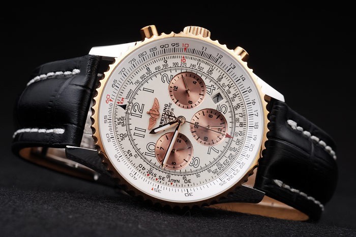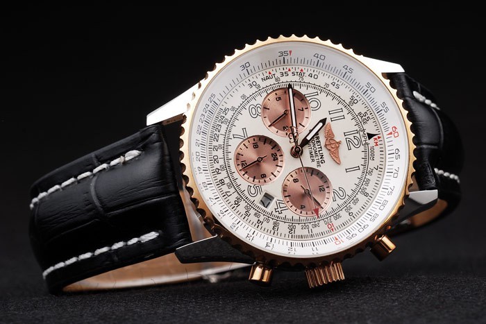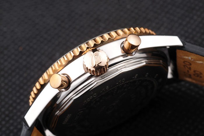 Crown: 18k gult guld guldpläterade rostfritt stål cutwork krona med Breitling logotyp och två mindre kronor på ömse sidor om det