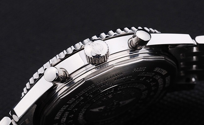 Denna klocka har AR glas. Ansiktet färg visas olika färger beroende på hur ljuset faller på itBack: Rostfritt stål push-in målet med Breitling engravings
