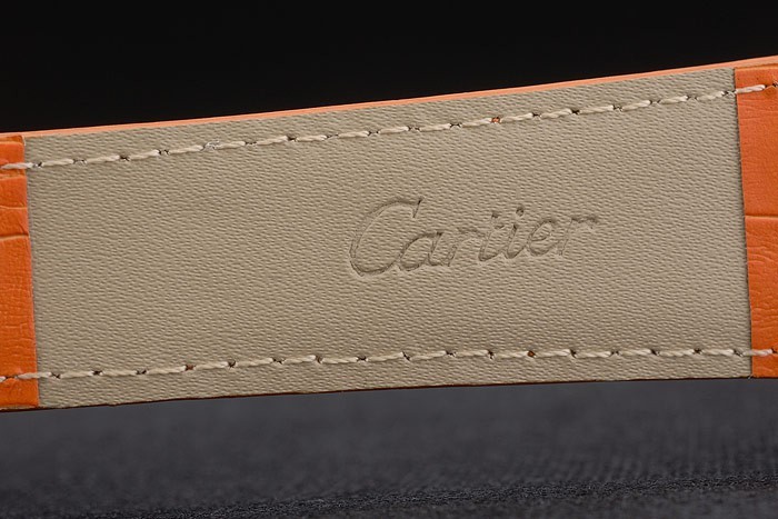 Bracelet: Cartier värme präglat apelsin krokodil läderrem med 18k steg-guldpläterade fold-in lås spänne