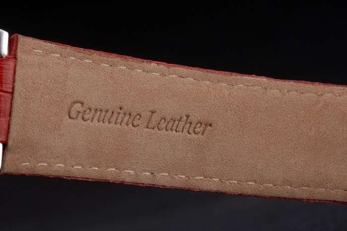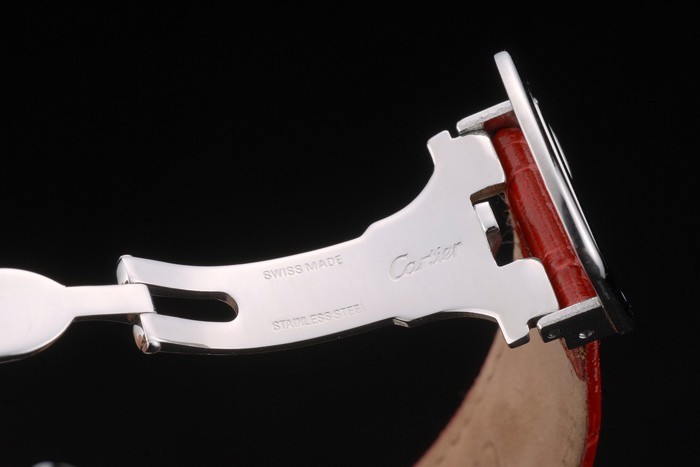 Bracelet: Cartier värme präglat röd krokodilläderband med polerat rostfritt stål utfällbar i spänne