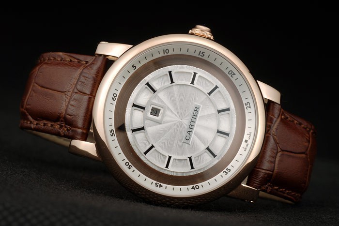 Bracelet: Cartier värme präglat brunt krokodil läderrem med ökade guldpläterade spänne clasp