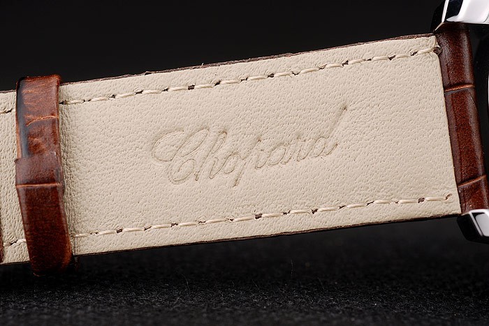 Bracelet: Brun krokodil läderrem med värme präglad stämpel Chopard och Chopard graverad rostfritt stål krok-spänne clasp