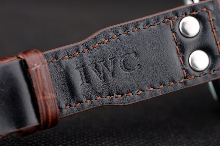 Bracelet: IWC värme präglat brunt krokodil läderrem med IWC graverad borstat rostfritt stål krok-spänne clasp