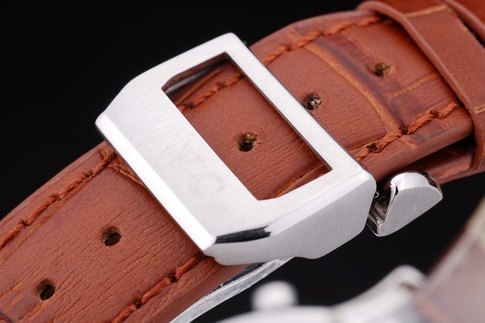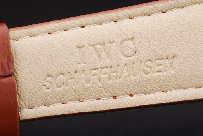 Bracelet: IWC Schaffhausen värme präglat brunt krokodil läderrem med IWC inskrivet rostfritt stål krok spänne clasp