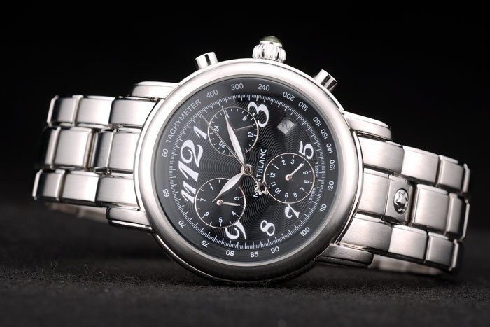 Crown: polerat rostfritt stål rundade cutwork krona med MontBlanc logotyp och två polerade rostfria tryckknapp kronor på ömse sidor om it