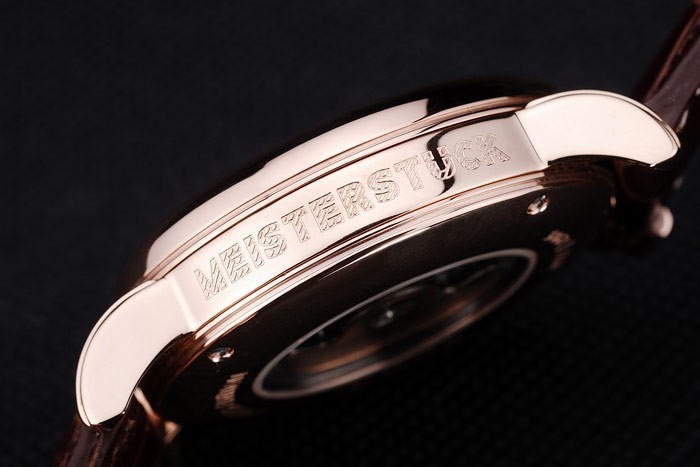 Bracelet rostfritt stål: Heat präglade MontBlanc brun krokodil läderrem med MontBlanc namn och logotyp ingraverad rose-guld flip-over krok clasp