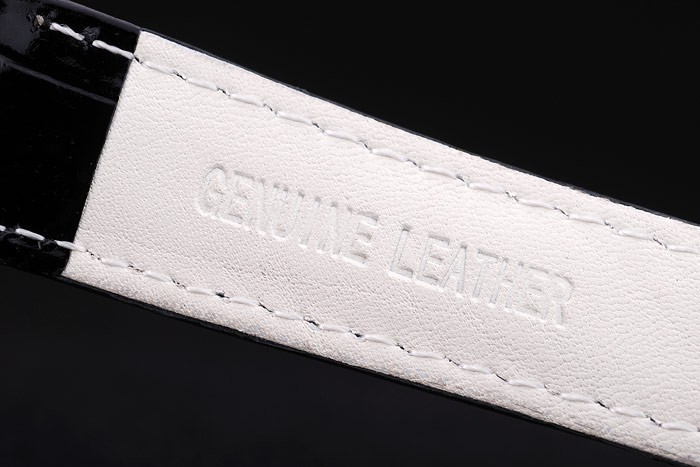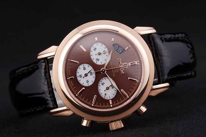 Bracelet: Patent brun orm läderrem med värme präglade Omega stämpel och tätt markerad krok-Omega logo rose-guldspänne clasp