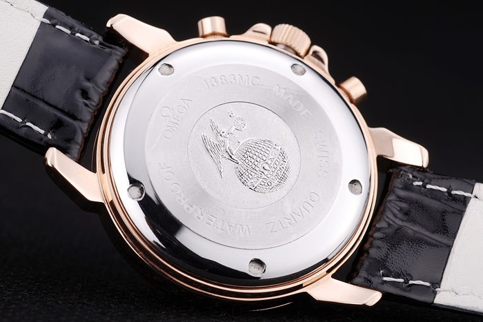 Crown: Rose-guld cutwork krona med Omega logotyp plus ytterligare två kronor, en på vardera sidan av it