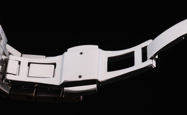 Crown: Rose guld cutwork krona med Omega logotyp plus ytterligare två kronor, en på vardera sidan om it