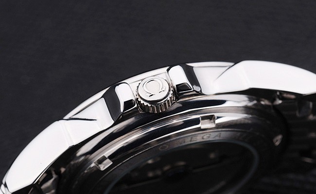 Crown: Polerat cutwork rostfritt stål krona med Omega logo