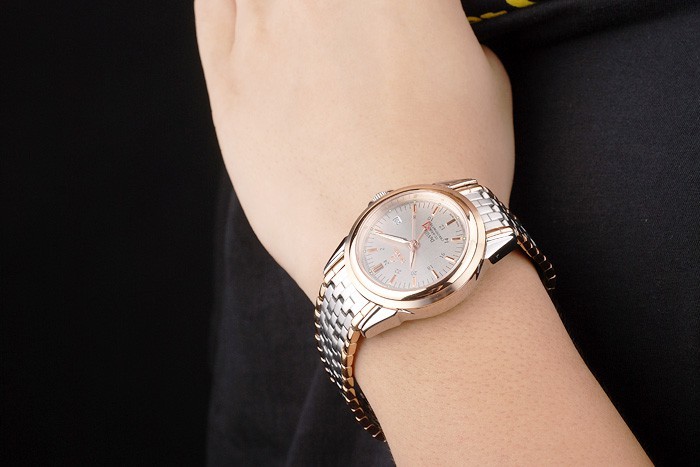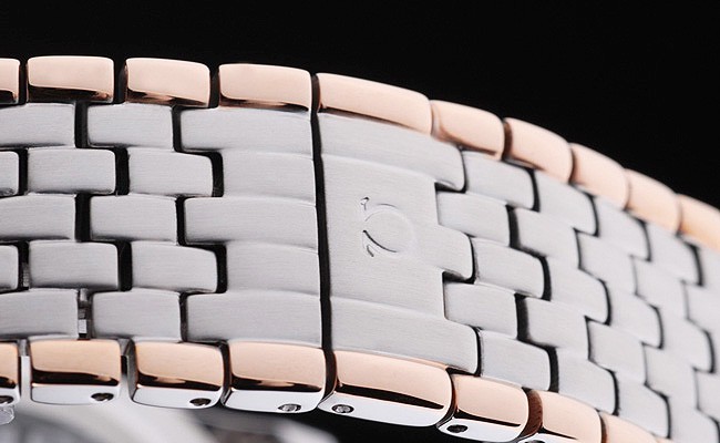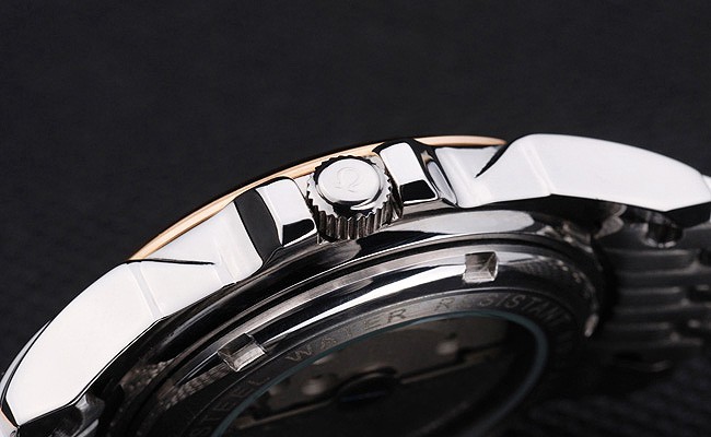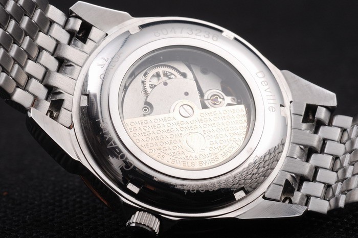 Tillbaka: Rostfritt stål push-in målet med Omega inskriptioner och transparent centrum avslöjar att mekaniken within