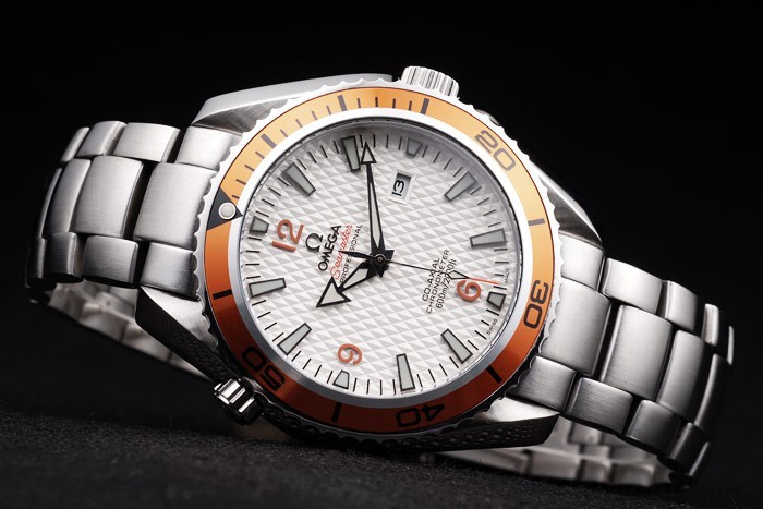 Crown: borstat rostfritt stål cutwork krona med Omega logotyp plus en extra krona på den motsatta toppen corner