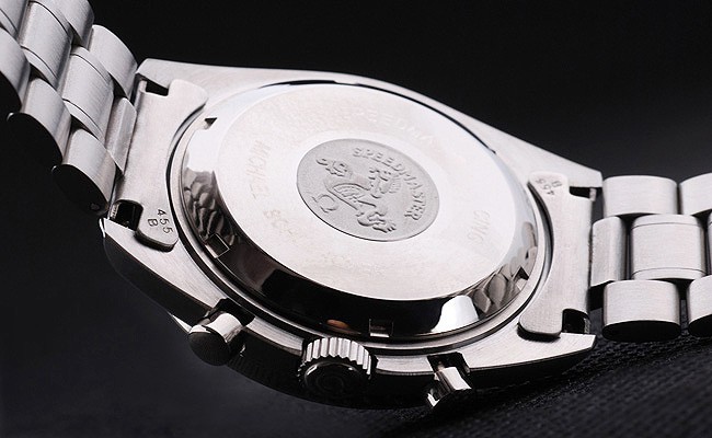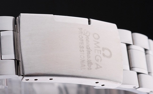 Crown: Polerat rostfritt stål cutwork krona med Omega logotyp plus ytterligare två kronor, en på vardera sidan om it