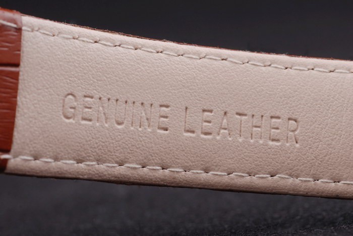 Bracelet: Brun läderrem med Patek Philippe stämpel och en ros guld vika i clasp