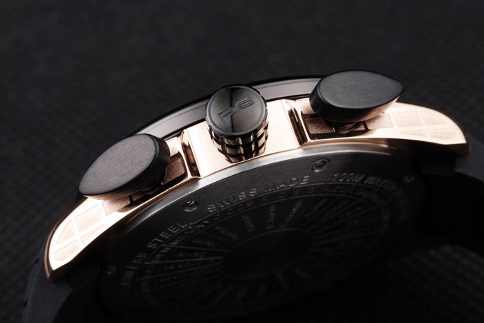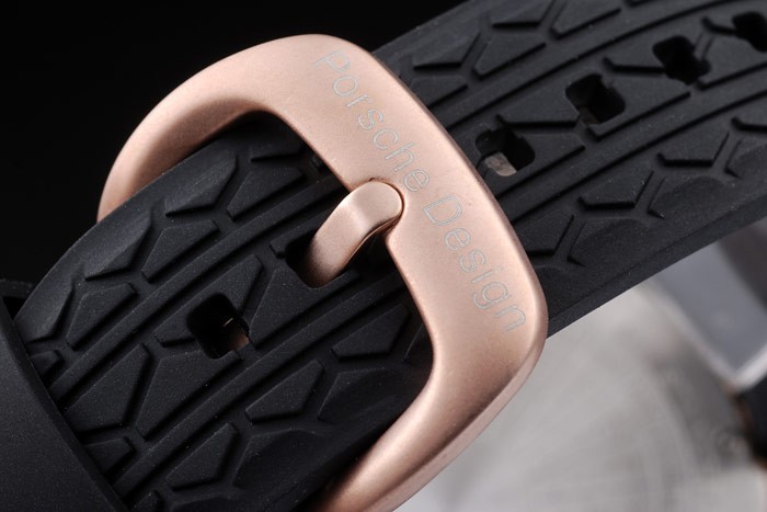 Bracelet: Däck spår svart gummiband med värme präglade Porsche stämpel och rose-guld krok spänne spänne med Porsche inscription