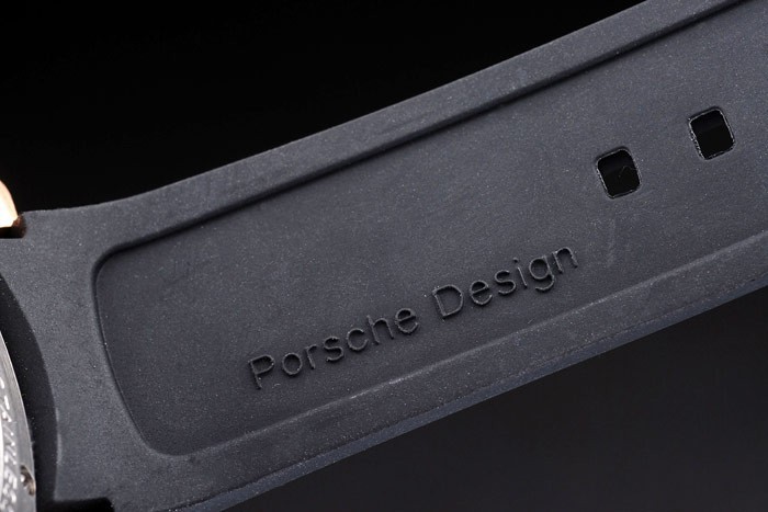 Crown: Ion-pläterad cutwork krona med Porsche logotyp och två ovala kronor på ömse sidor om huvud crown