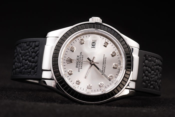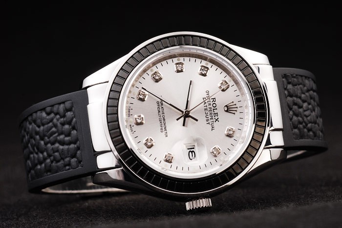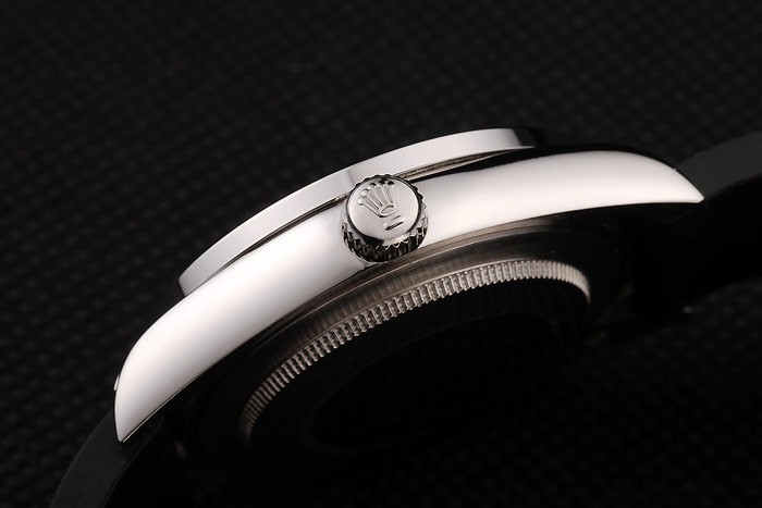 Bracelet rostfritt stål: Designad svart gummiband med Rolex graverade fold-i lås med Rolex logotyp ristade på top