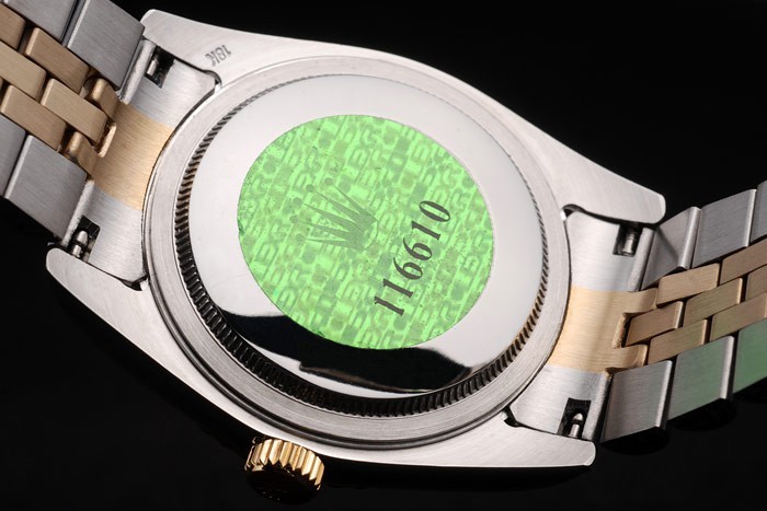 Tillbaka: Rostfritt stål push-in målet med grön Rolex logo stamp