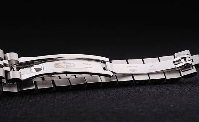 Bracelet: Borstad och polerat rostfritt stål armband med Rolex gravyr dold spänne visar Rolex logo