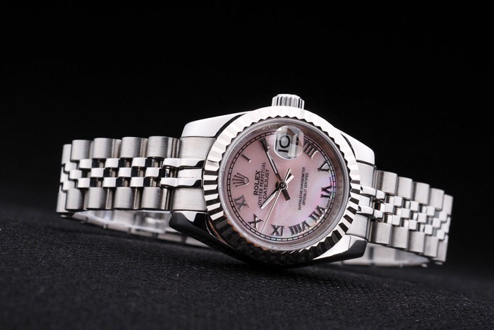 Bracelet: Borstad och polerat rostfritt stål armband med Rolex gravyr dold spänne visar Rolex logo