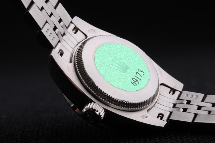 Tillbaka: Rostfritt stål push-in målet med grön Rolex logo stamp