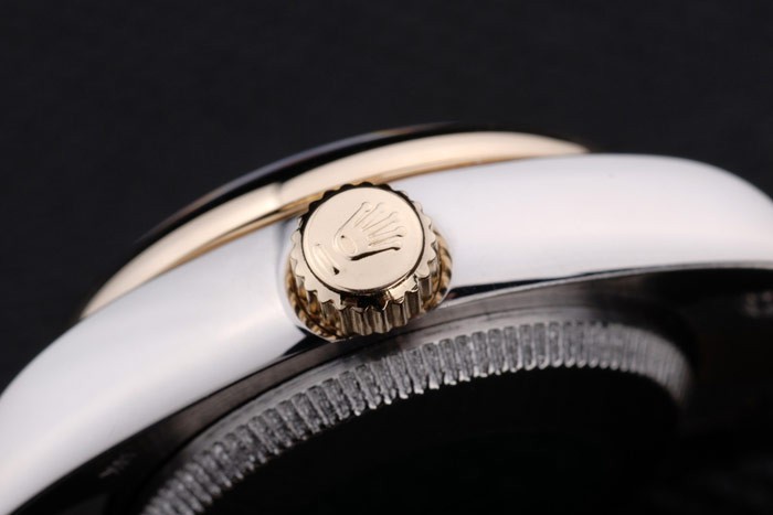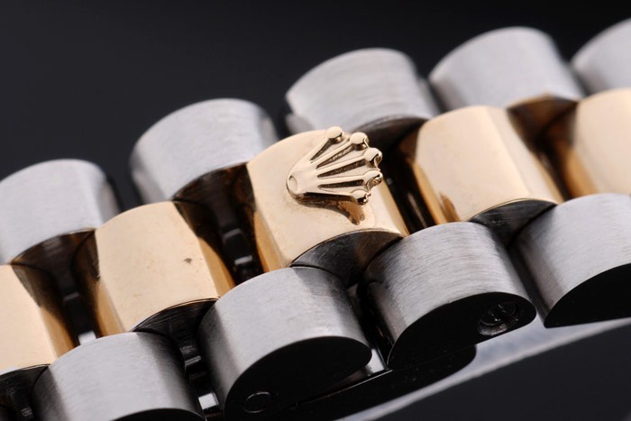 Crown: 18k gult guld stål cutwork krona med Rolex logo