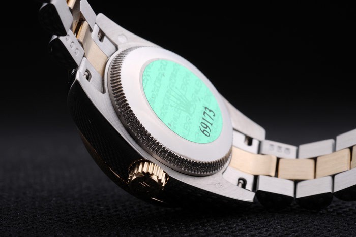Tillbaka: Rostfritt stål push-in målet med grön Rolex logo stamp