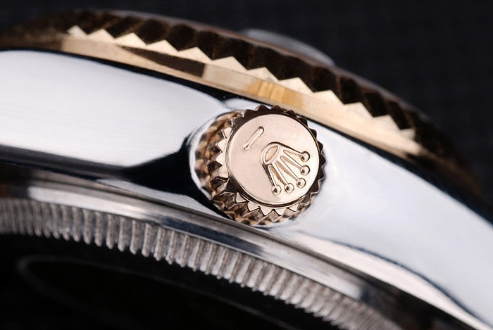 Crown: 18k gult guld stål cutwork krona med Rolex logo
