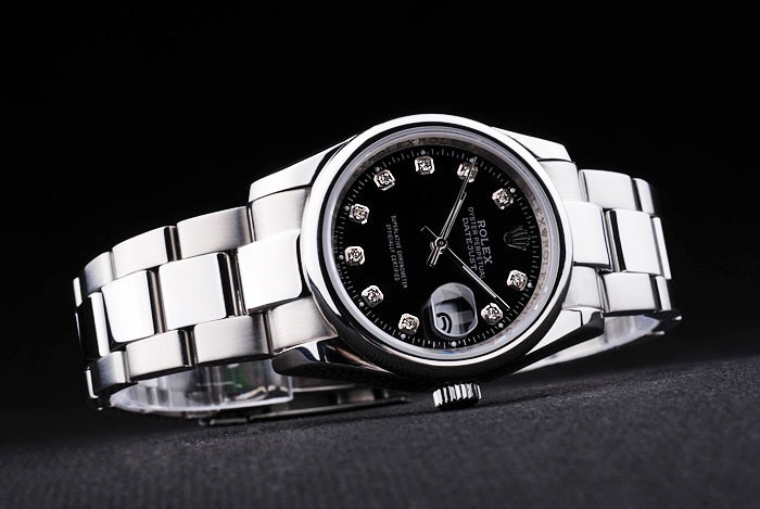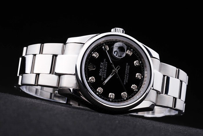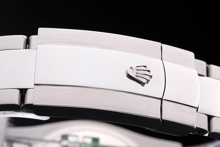 Bracelet: Borstad och polerat rostfritt stål armband med Rolex gravyr fold-in utbyggnad lås visar Rolex logo