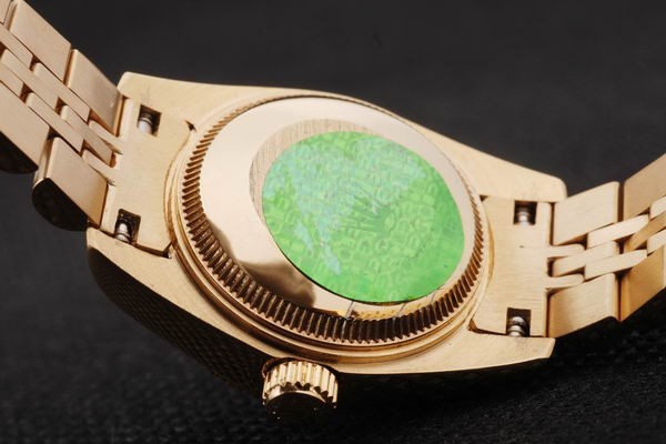 1Back: Skjut tillbaka i 18K guld med grön Rolex klistermärke och markings