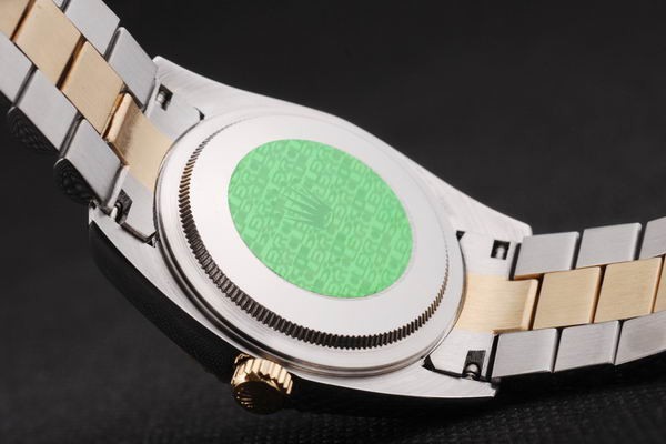 Back: Tryck in rostfritt stål tillbaka med grön Rolex klistermärke och markings