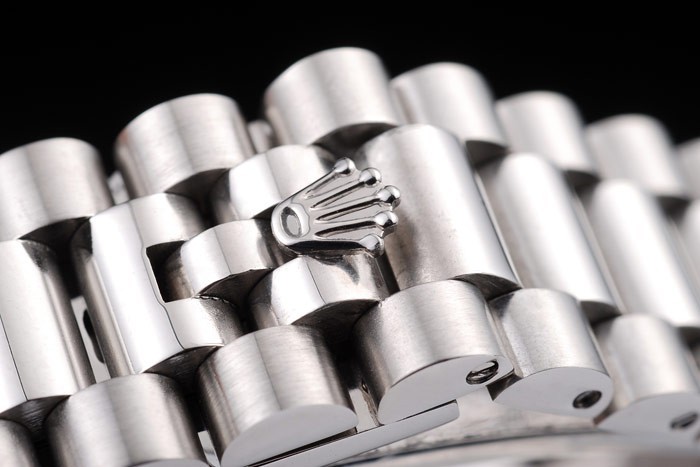 Bracelet: borstat rostfritt stål länk armband med Rolex graverad dold spänne visar Rolex logo