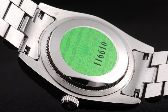 Tillbaka: Rostfritt stål push-in målet med grön Rolex logo stamp