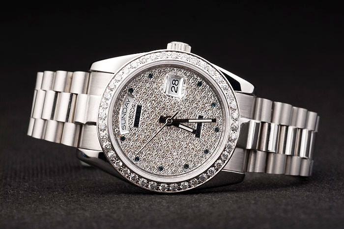 Back: Tryck in rostfritt stål tillbaka med grön Rolex klistermärke och markings