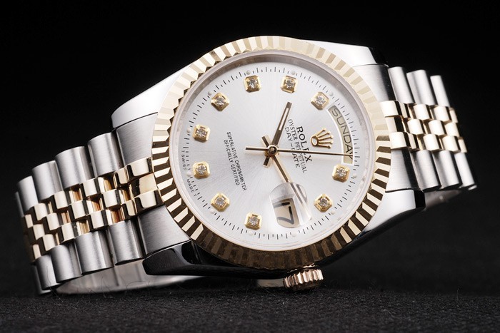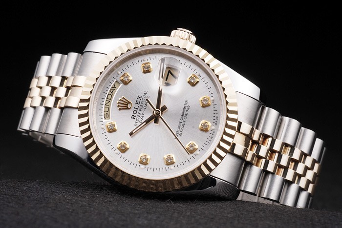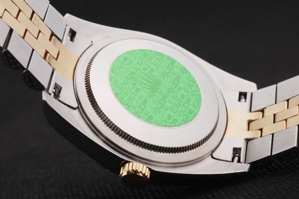Back: Tryck in rostfritt stål tillbaka med grön Rolex klistermärke och markings