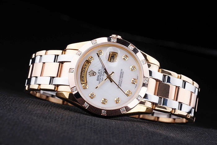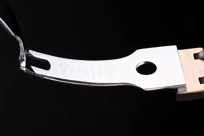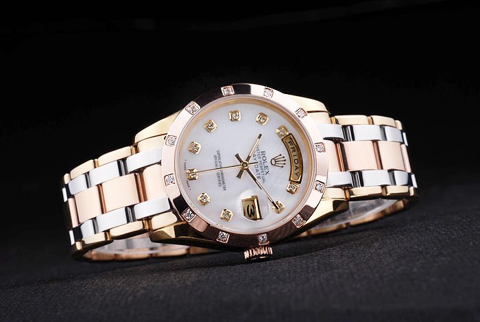 Bezel: 18k steg guld tonas ram i rostfritt stål med kristall stud timme markörer